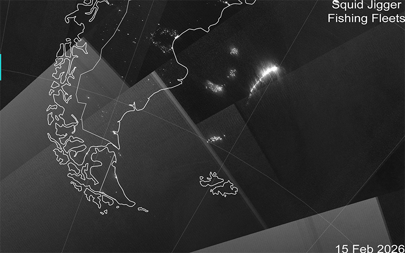 In the detailed high-resolution images (above), you can often find ocean lights from fishing fleets. For example, the movements of squid jigger fleets off the eastern coast of South America can often be found.
