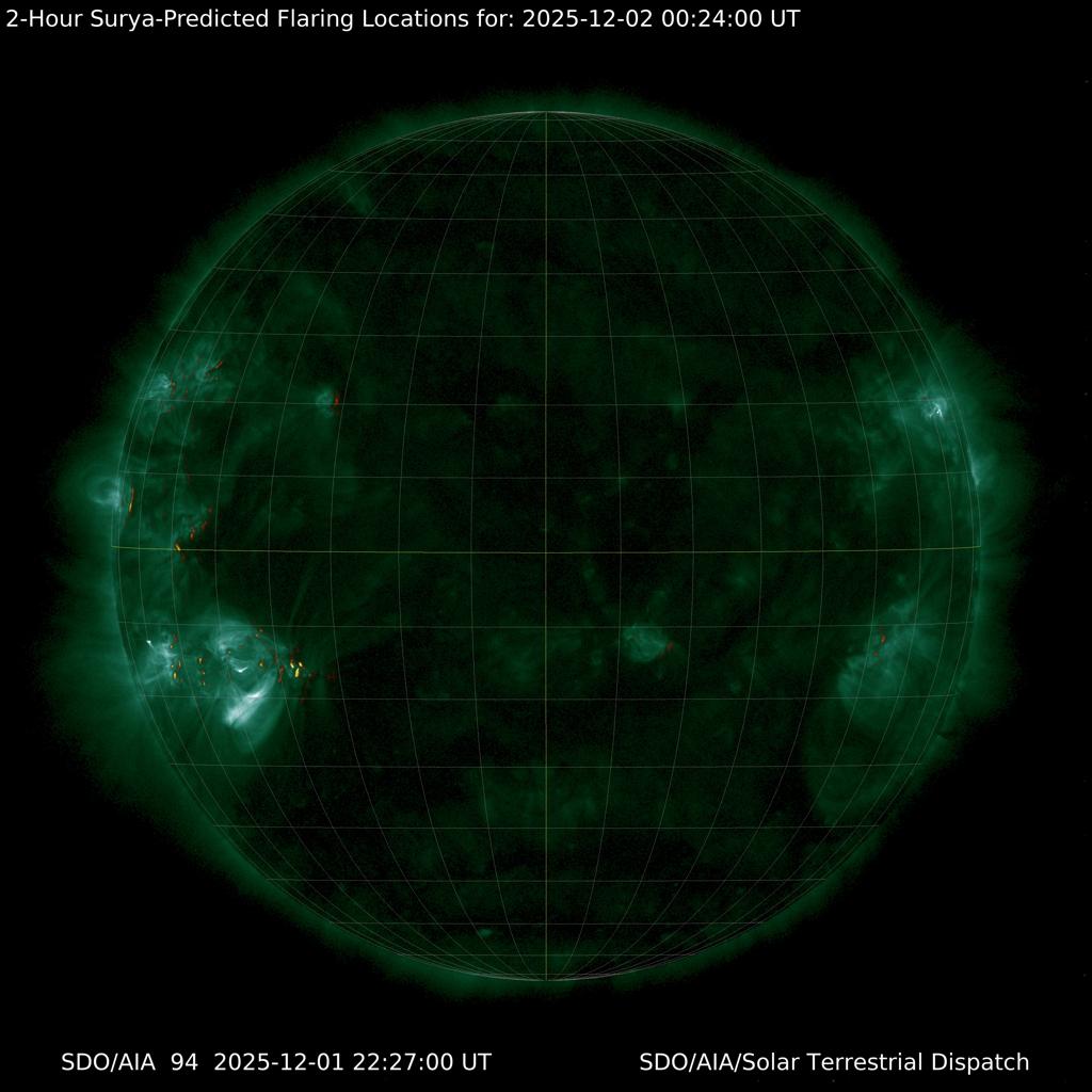*NEW* Experimental 2-Hour SURYA Flare Prediction Heatmaps and NOAA-21/20/Suomi Spacecraft Auroral Activity Mosaics.